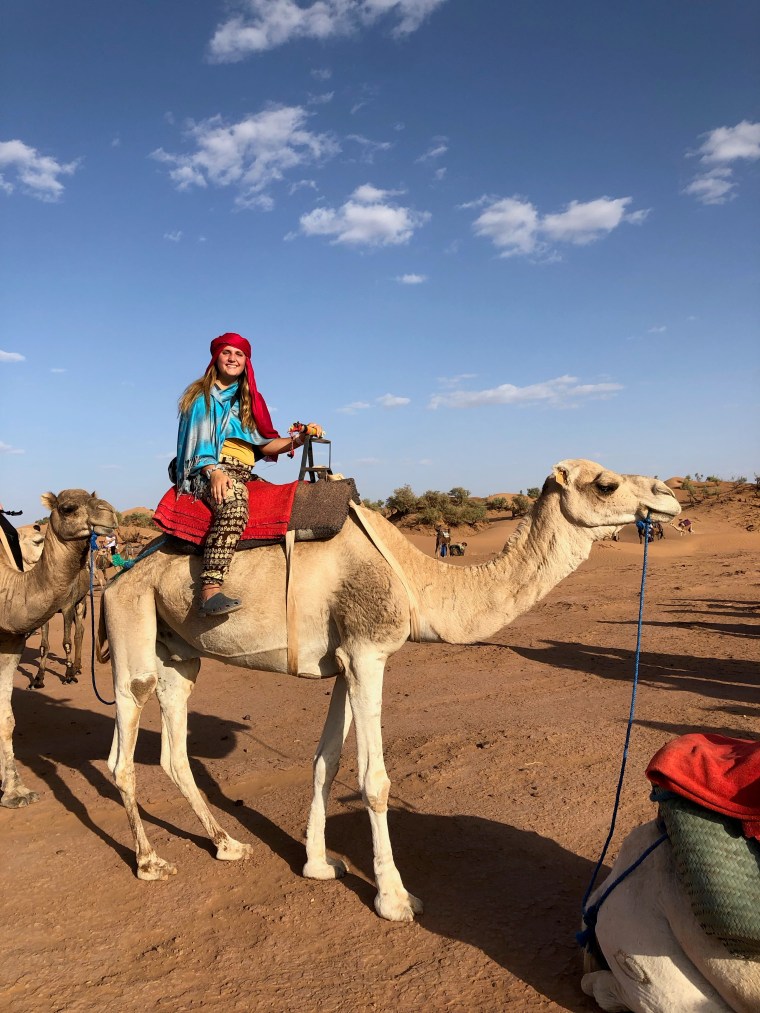 Day 4- I got to ride a camel this day! But don’t let me get ahead of myself. We were up around 0700 so we could be back on the bus by 0800 for another round of driving. We started the day with a four and a half hour drive before we had lunch in Zagora (Don’t worry, we got a few breaks. I know ya’ll were concerned). Then we drove about an hour and half to Oulad Driss, where we would start our camel trek.
