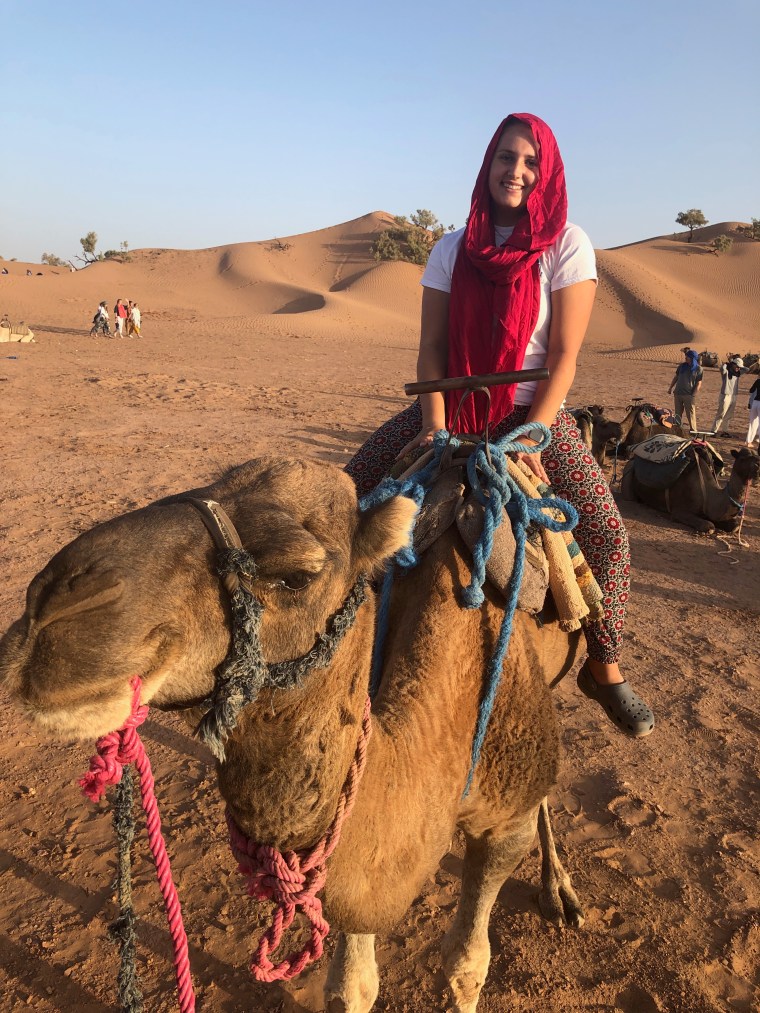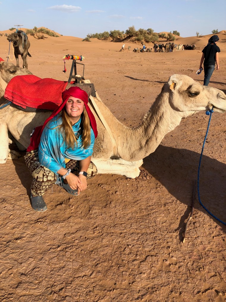 Day 5- I was sore this morning. Everyone had complained about it the night before, but I hadn’t felt it. LET ME TELL YOU, I jumped right into the same boat as them when I woke up. I was up at 0630, well technically 0645, in order to climb and watch the sunrise. The views of the sky were amazing and although I didn’t actually see the sunrise, because I didn’t want to forfeit breakfast, it was still spectacular. Breakfast was a very good, buffet-style meal. We had to hurry up, eat, and get our stuff together so we could hop back on the camels to head back to our bus. I was in one of the first groups to leave. My camel this day was a little grumpy at the beginning, but seemed totally fine by the end. I didn’t catch this one’s name. The ride back was a lot worse than the ride there, still fun but painful. Because we were all sore, it just added to the pain and you tried to position your body so the pressure was focused in a different area, but then by the time we were back at the bus, everything hurt and sitting on the bus comfortably was basically impossible. Now, I don’t want to sway anyone away from riding a camel, because it’s one of the coolest things I’ve ever done, but I talked to people who rode one for a shorter amount of time and were just as happy and a lot less sore.