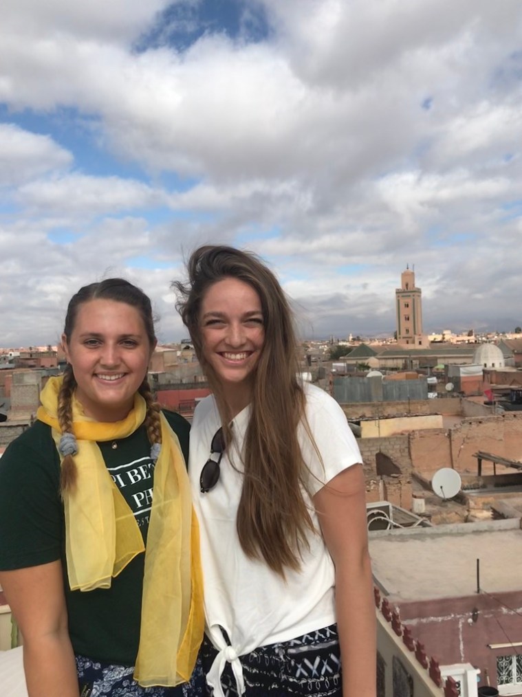 Day 6- This was our final day in Marrakech and we had a little free time before we had to go back to the ship. We went to the market around 1000 and I ended up splitting off with our guide, Bob, and three other girls. We went to a place to buy rugs made with live wool, not dead wool like the ones sold in most tourist shops in the market. We were able to see where and how the rugs were made, even though none of the women were there because they were home with the children since they didn’t have school that day. We were able to each tie a couple of pieces of the wool on a carpet that was in the process of being made. Then, we were told to go up to the roof so we could get a panoramic view of the city, which was incredible. When we came down, we were given mint tea, the national beverage of Morocco, and then the rugs were all shown to us. There were so many different ones and they all had such different stories. One interesting thing we learned was that each pattern is unique to one woman and although no two rugs are exactly the same, a woman will stick to the same general pattern her whole life and this pattern is passed down from mother to daughter over generations.