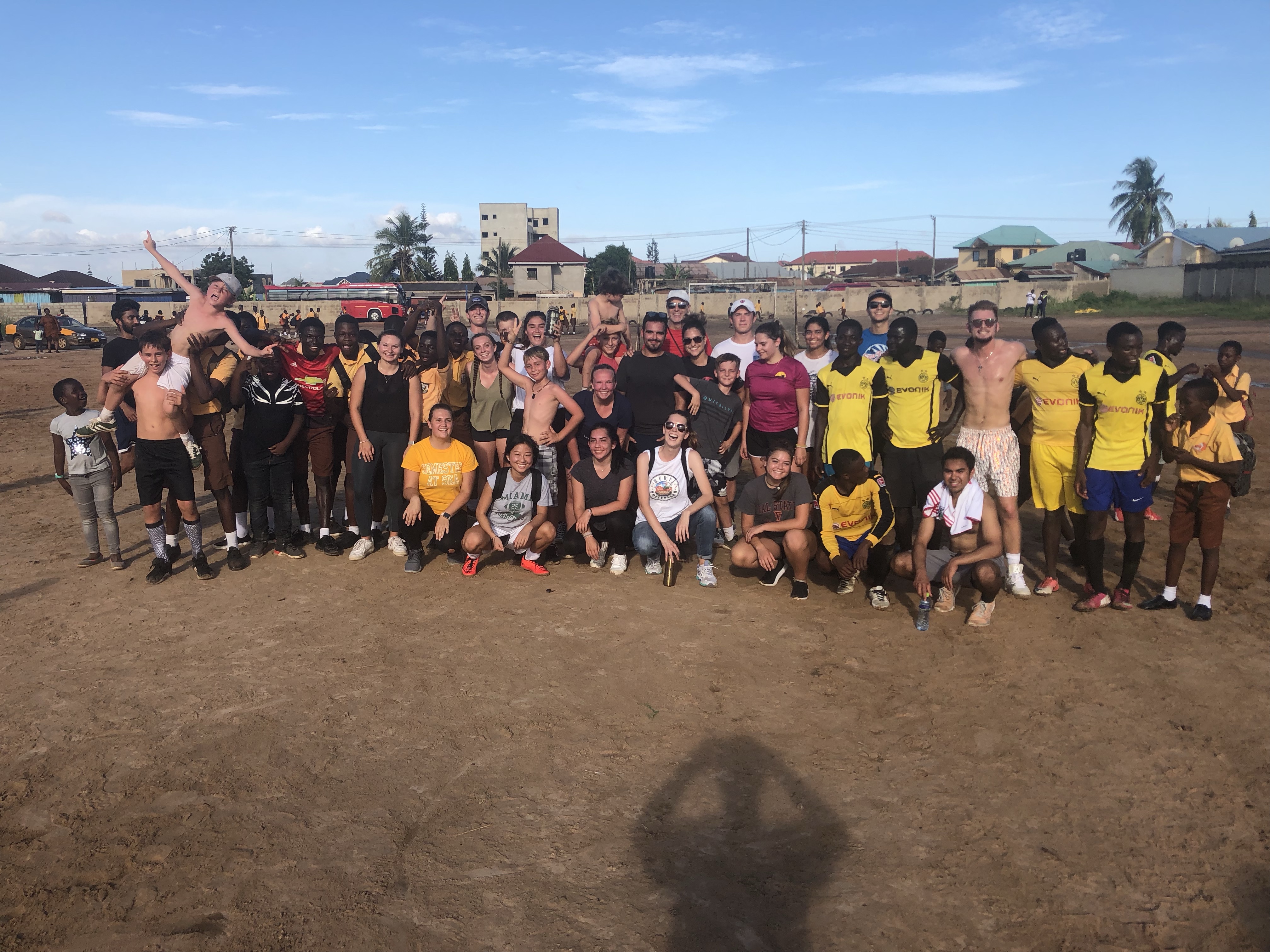 After the game, we took a big group photo before we had to hop back on the bus. We were back by 1650, about an hour before one ship time, so some of us wandered around the shops by the gangway. After a little shopping, I was back on the ship by 1710. Both my roommates were back by then, so we chatted a bit about our days. Then I grabbed dinner around 1730 and headed to Lido Deck (top deck) to recap my day and wait for us to leave port since we were moving from Tema to Takoradi for our last two days in Ghana.