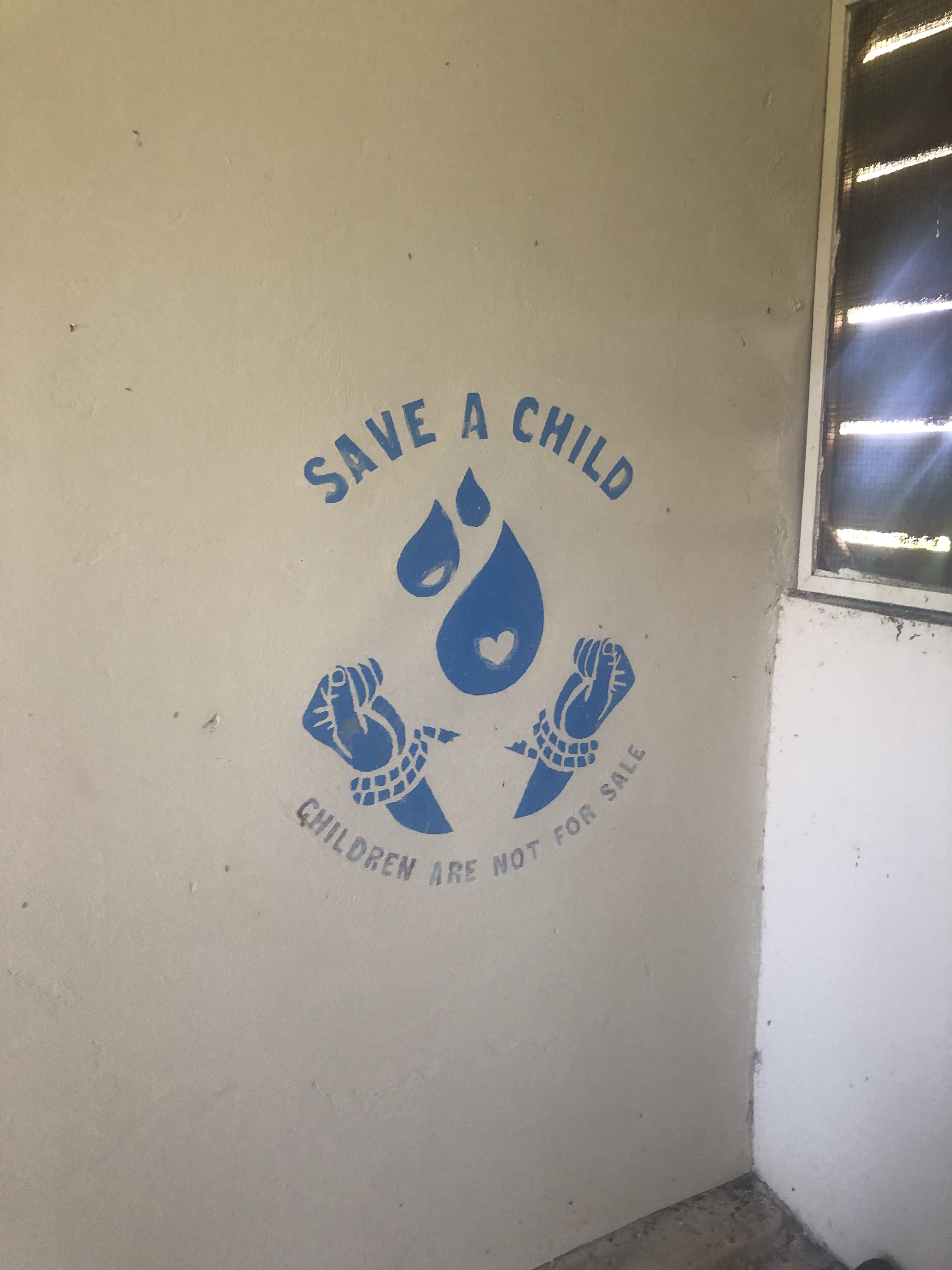 After that, we split into groups of about ten people and went with the different staff in order to see the entire complex. There were a few living spaces for some staff and volunteers in addition to the two buildings for the kids. There is a school through the organization right on the grounds, which we were told is one of the best schools in the area. One other really interesting was that they had their own water purifier and they packaged it in the small baggies, but the bags had their message of “children are not for sale” on them. They also had a shop with many single mothers involved, which goes along with them trying to educate mothers and help them get an income so they can take care of their children and not give them up. In addition to the buildings, they also had many sporting areas, such as a football(soccer) field, basketball court (that had been donated by another organization Finding Refuge), and a volleyball court.
