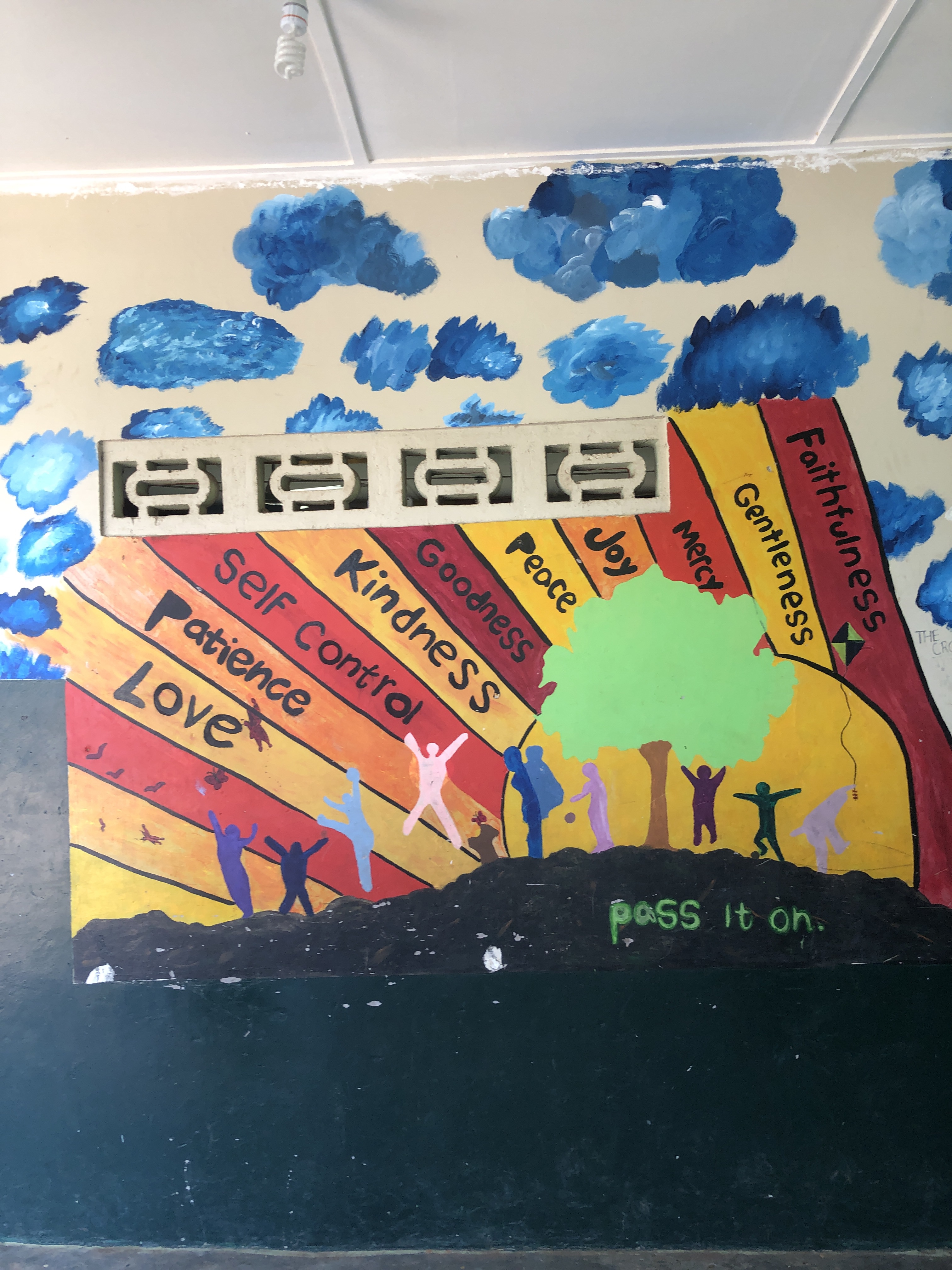 After waiting for a hot sec for all the balls to get finished, since the worker had to do this for us, we headed to a local field in order to play a game against some local guys (maybe between fourteen and seventeen). There were seven of them against about fifteen of us. Right away they scored two goals against us (one of the ship kids was our goal; he’s not even five foot). Then they gave us someone to play goalie, who was a rockstar in net, and we ended up scoring once. About half way through, we switched out for the other portion of our group to play them. By then, we had drawn a crowd of like fifty school kids from the school by the field (I think these guys were from there). Our SASers had recruited a few local school children to play for our side so it was more like seven to twenty for the second half. We ended up scoring two goals and winning the game. Now, one might say “okay yeah you won, but they were so outnumbered, that it doesn’t really constitute as winning”, and to that I say yes it does. Those seven guys were so (SO) good. I mean they moved so well, formed great triangles, and passed perfectly. In all, they were just incredible players; we wouldn’t have stood a chance.